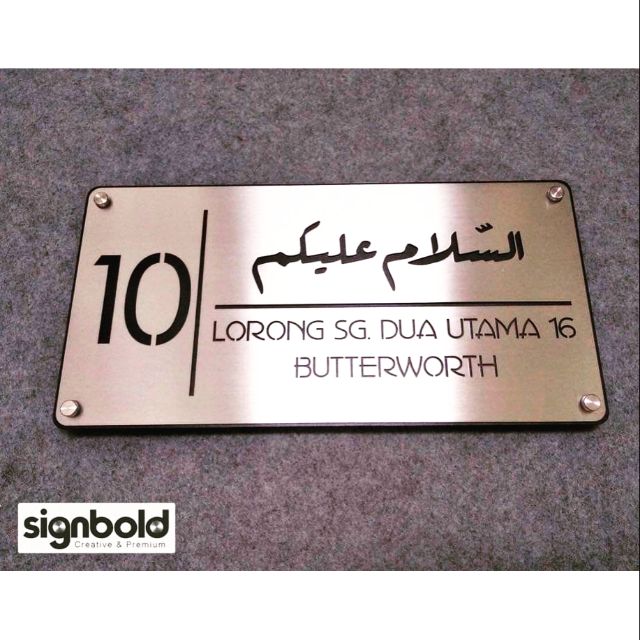 Humo Stainless Steel House Number Plate Modern Jawi Design Metal Nombor Rumah Fully Customized 門牌定制